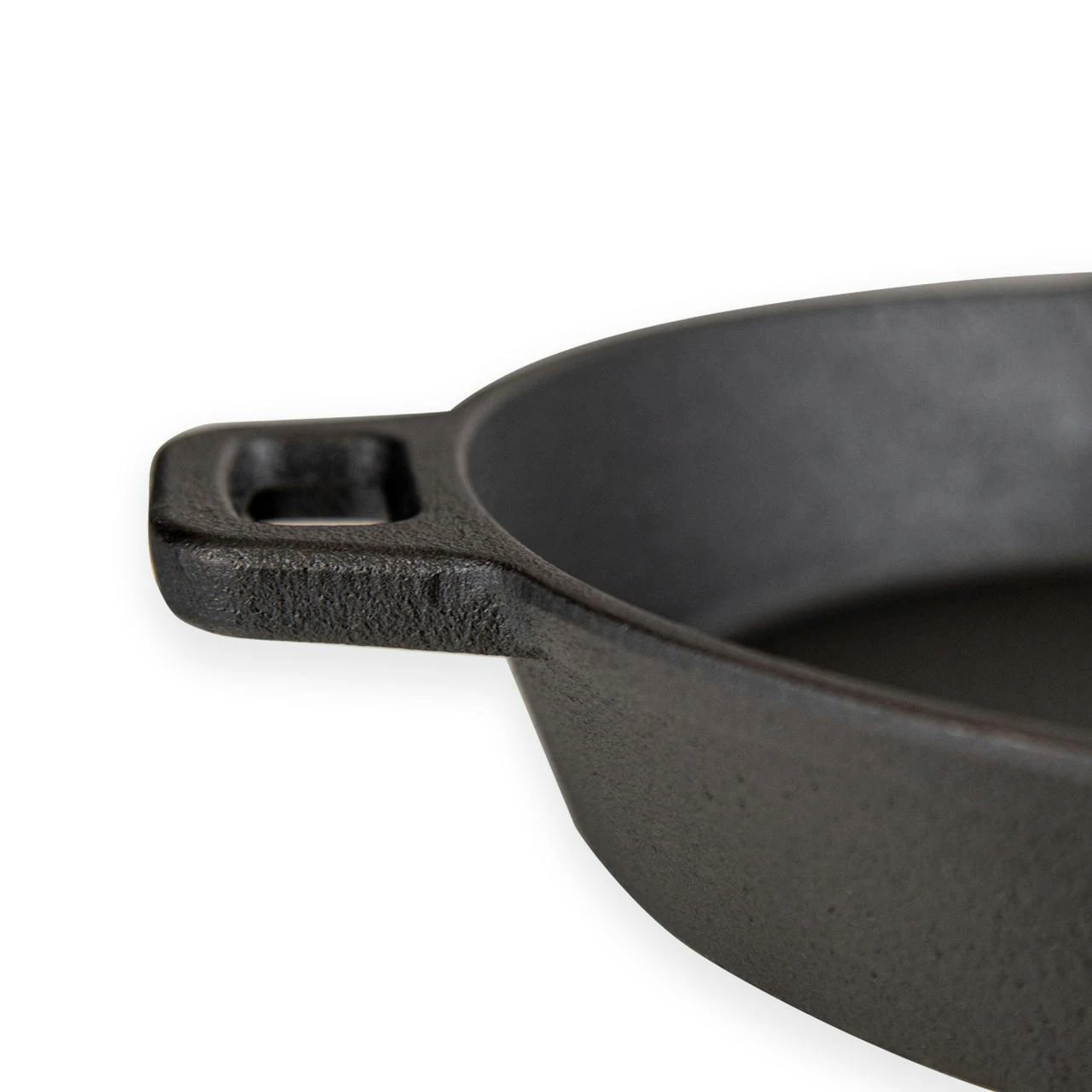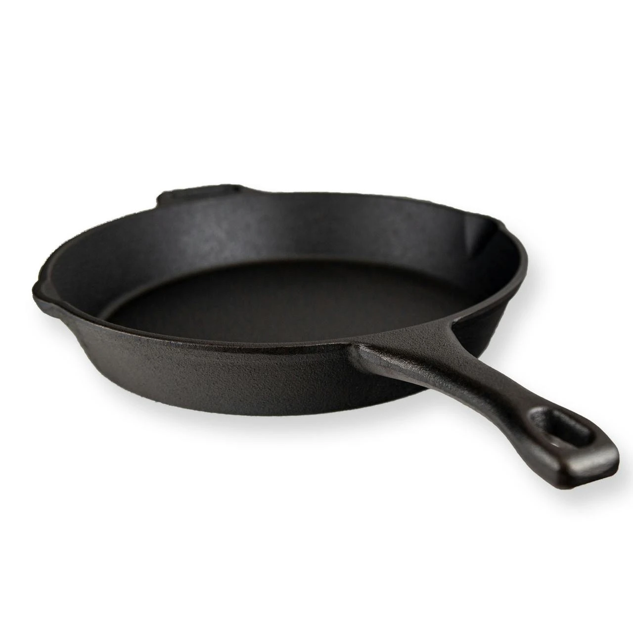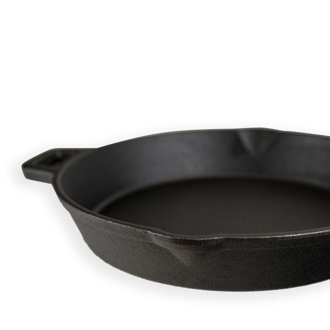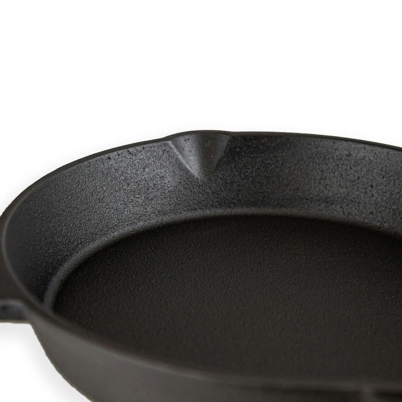 A total campfire classic, this pan has dual spouts for transer food to plates and a helping handle to make dishing and pouring easier.