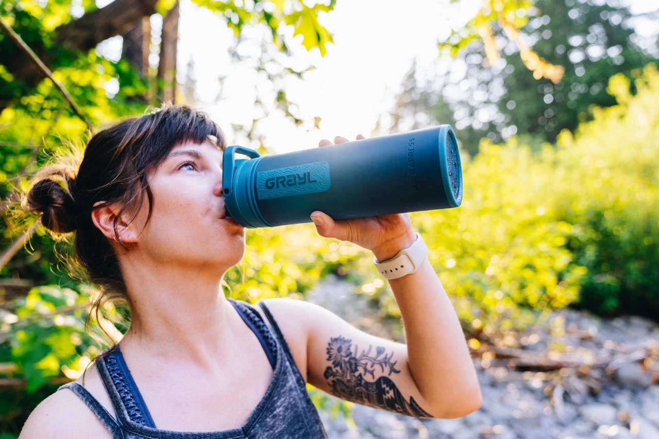 Just like making French Press coffee. Fill the outer cup with unfiltered water, plunge the press down, and drink. You can quench your thirst in seconds as you hike, camp or paddle. Grayl’s patented electroadsorpative media creates a sub-micron trap to remove pathogens and inorganic compounds.