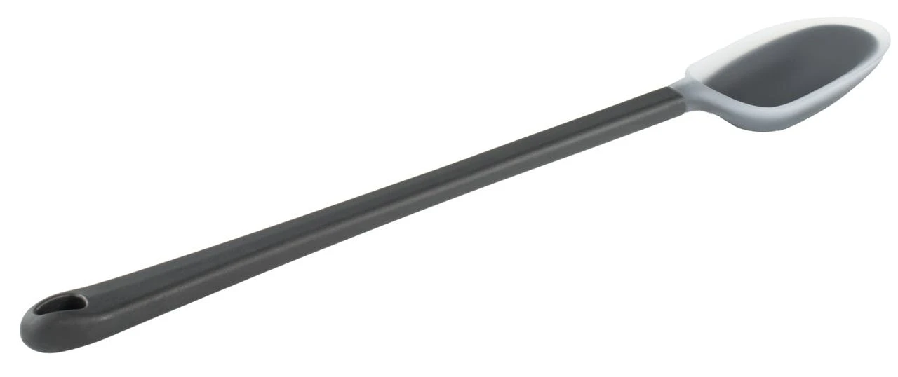 This extra-long spoon is great for stirring and eating. The long handle and soft silicone bowl help you get every last bite.