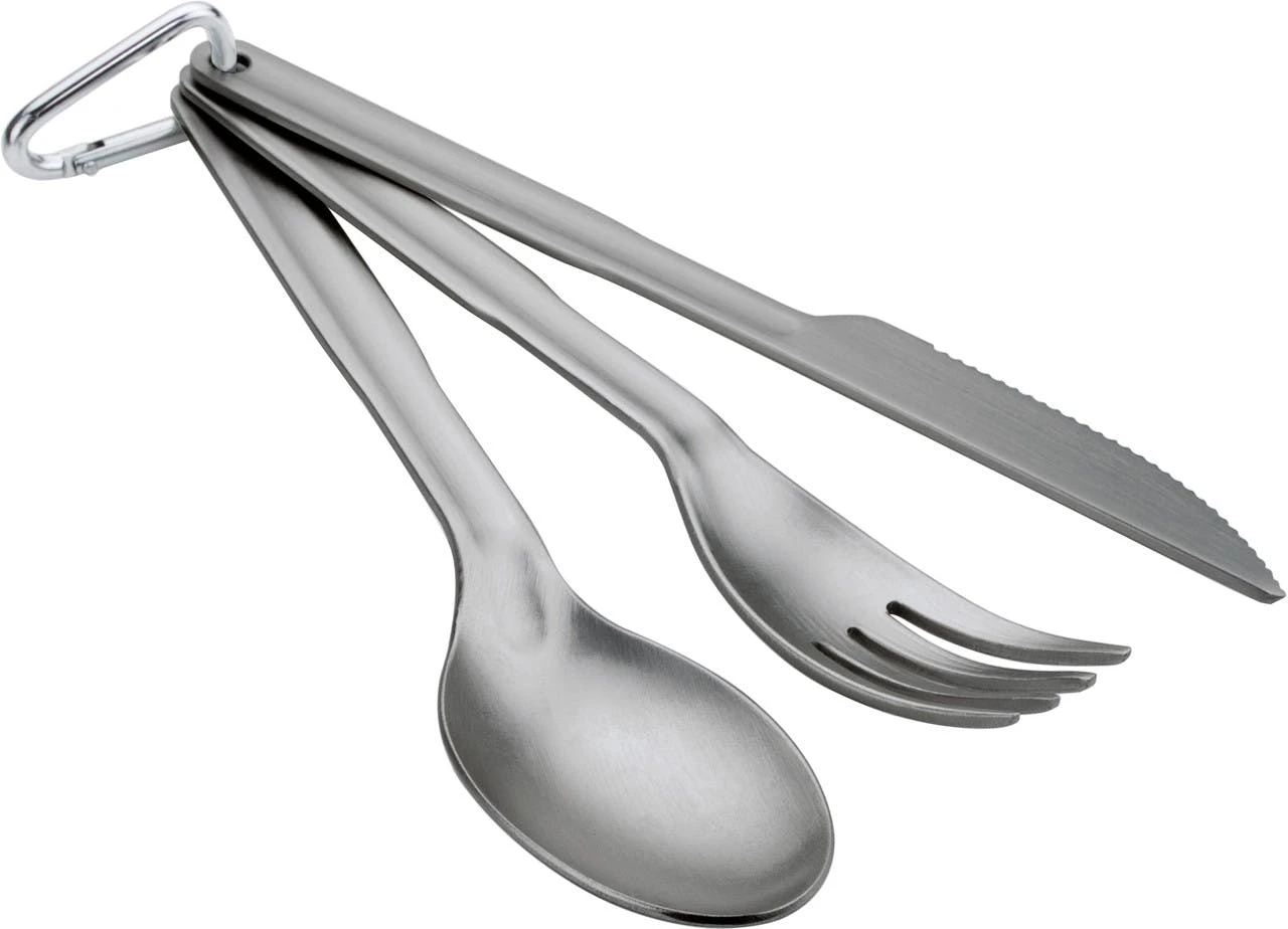 A fork, spoon, and knife so you can get every last bite, no matter what’s on the menu.