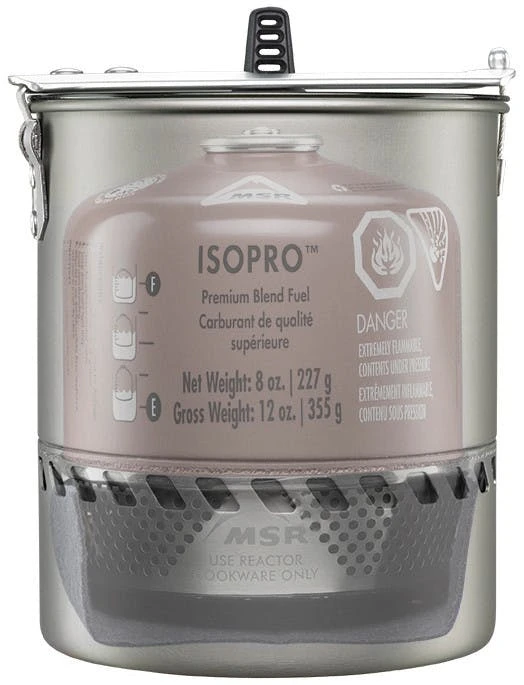 - Stove and the canister fit into the pot for travel, and a locking lid keeps it all secure