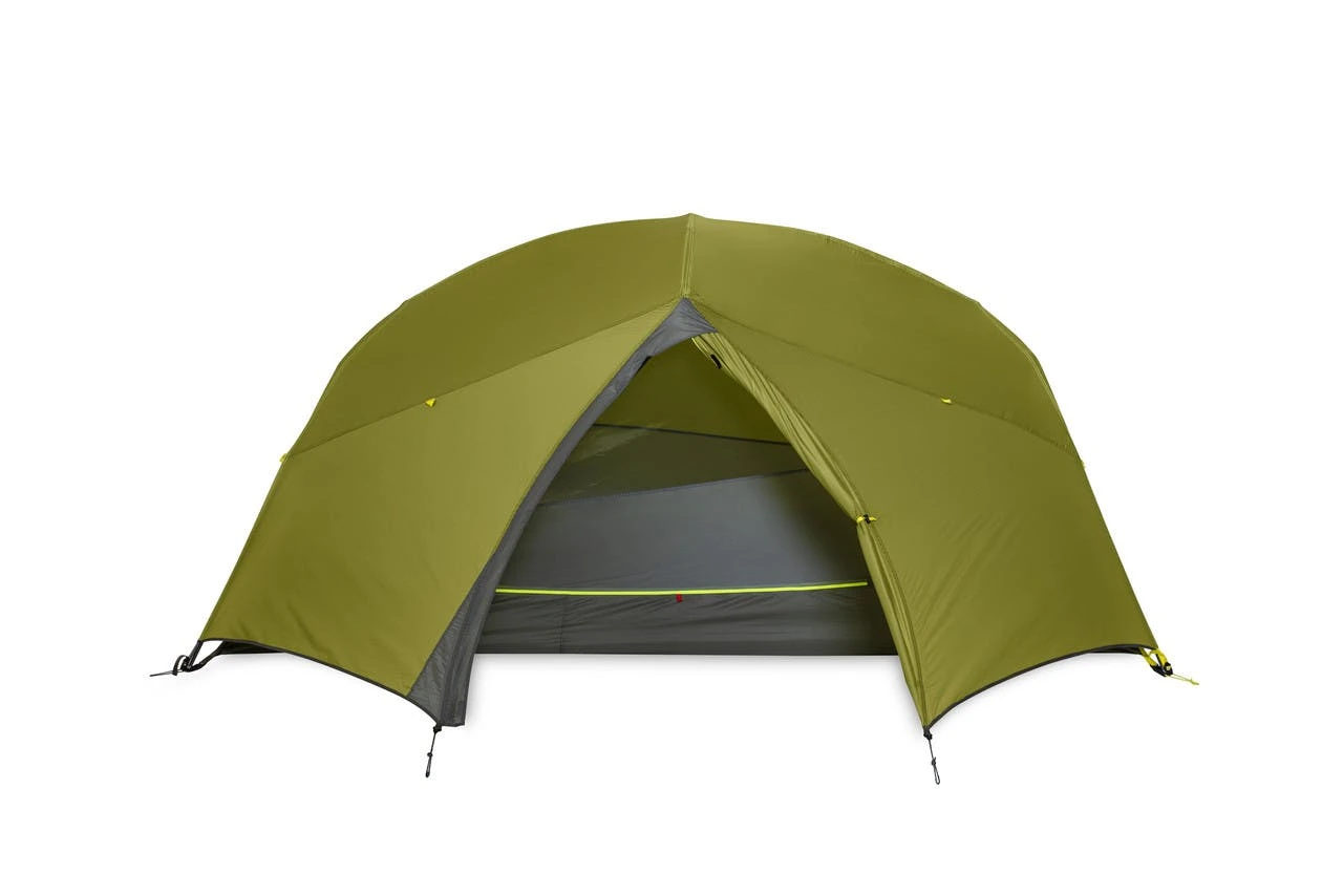 Hit the backcountry in comfort. The Dagger is a lightweight 2-person tent that doesn’t skimp on livable space, with pre-bent poles for greater headroom inside. Updated with Nemo’s new OSMOâ„¢ fabric on the fly and floor, it maintains the same water protection and durability properties of the previous version, but dries much faster and doesn’t sag when it gets wet. Two extra-large vestibules provide plenty of gear storage and a dry place to put your boots on. The Divvyâ„¢ stuff sack lets you split the loads evenly between you and your hiking partner.