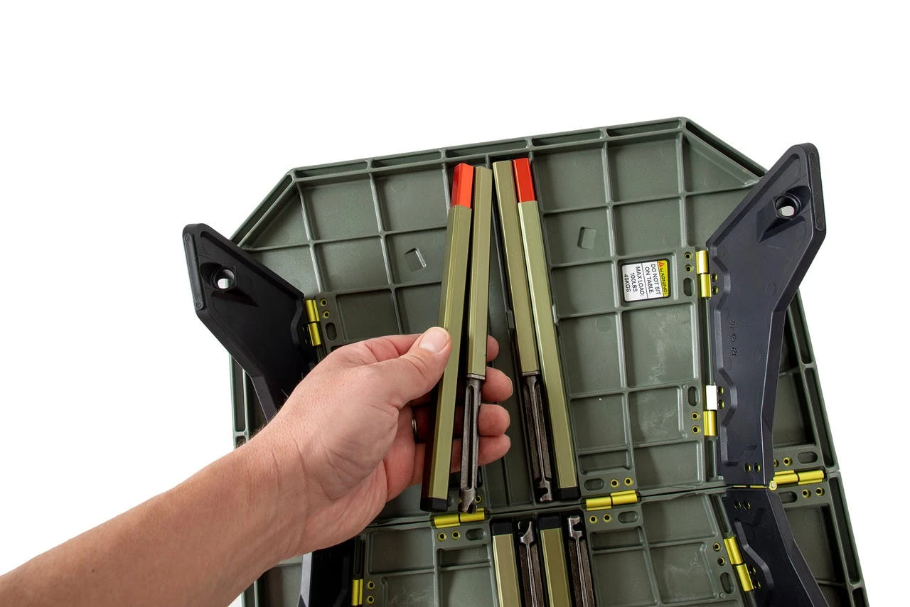 - Legs and base nest together for convenient storage