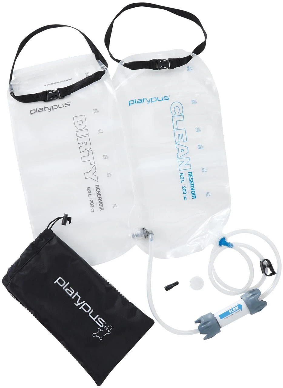 Hang this gravity-fed water filtration system at basecamp and get 6L of clean water in less than 3.5 minutes. The replaceable filters remove sediment, bacteria and cysts to give you safe water in the backcountry.