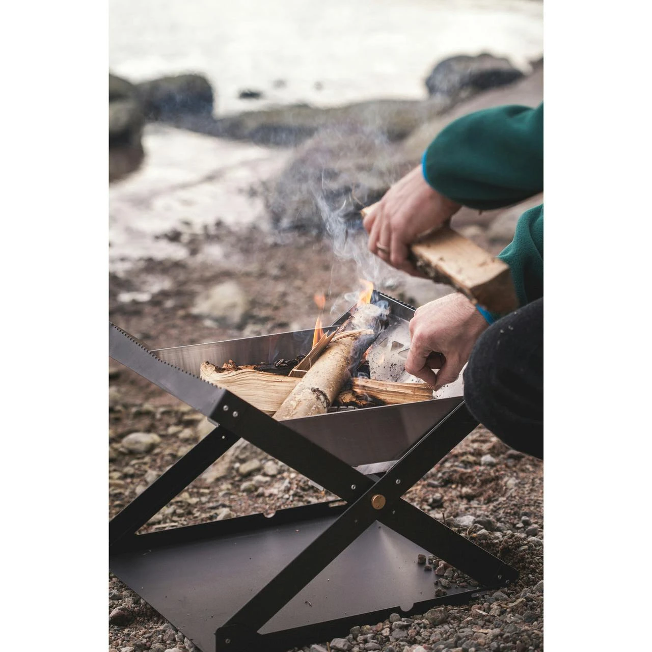 The Kamoto is way beyond a circle of rocks. Raise your fire up off the ground to protects the ground from getting charred. Strategically placed vents let air in, while blocking the wind, while ash falls through the bottom onto the ashtray.