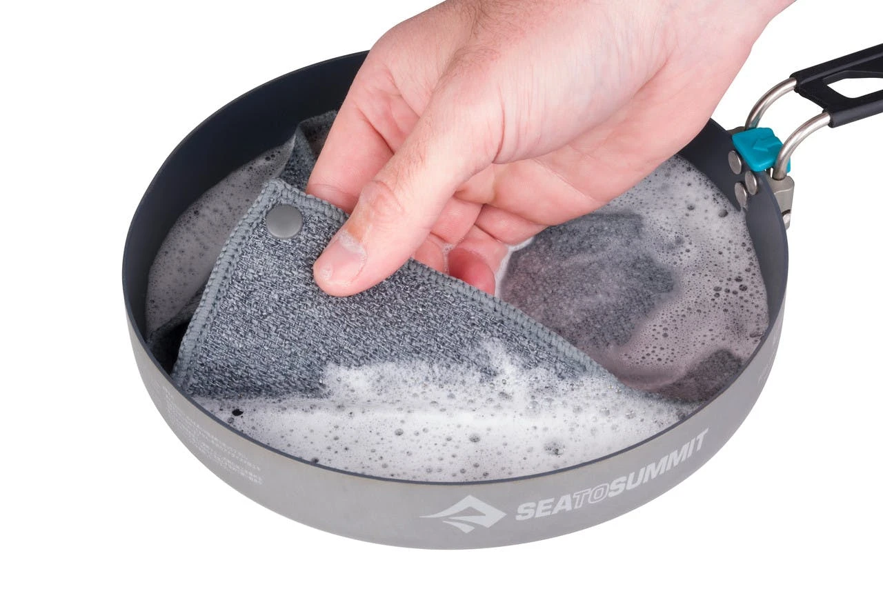 A compact wash kit for quick and easy clean-up at camp. It includes everything you need to wash up after dinner, including the kitchen sink.