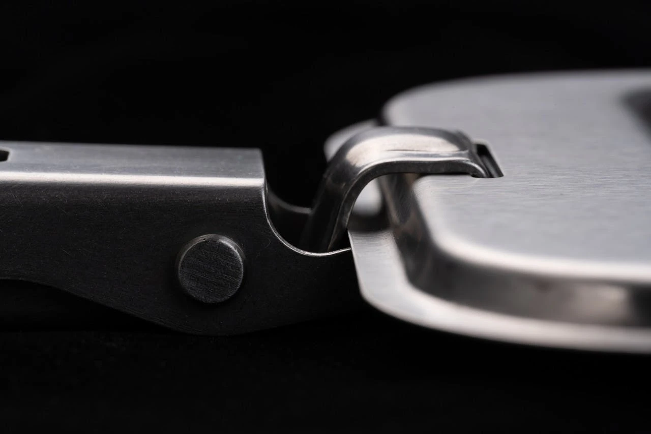 Pull out all the stops when exercising your backcountry culinary skills. This 9-piece cook kit allows you to boil, grill, steam or fry directly over your fire. The rail system connects to your Wolf and Grizzly grill frame, keeping the cooking surface at an ideal height above the coals. It all packs down into the 2-litre pot for convenient storage.